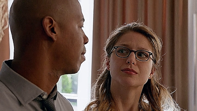 That's right, if I were her friend I would give Kara a brush machete for Christmas to clear out some of that safari grass because she has the deepest jungle fever that I've seen allowed on prime time at 8pm on Monday nights in a long time. Never mind the fact that her other colleague who is a bit of a nerd (what Jimmy was to Clark Kent) has a huge crush on her, her guy is of the tall, black, bald and handsome variety, not to mention older. Due to what I see as one of the biggest problems of this show which I will cover later, he doesn't let on to knowing that she is Clark's cousin right away, so they have to do this dance which was a total farce in my eyes.