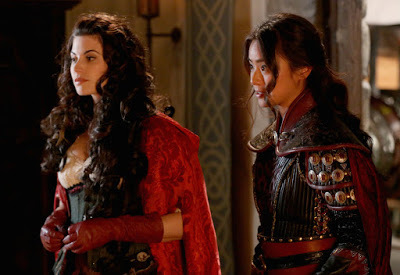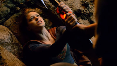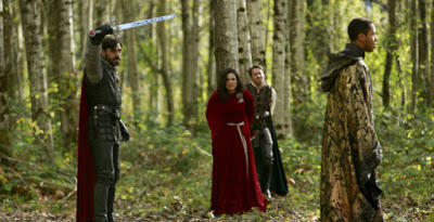 But everything isn't good. Failing to mention it earlier, Merlin finally tells the group that a slice from the blade cannot be healed under any means. As she is about to reunite the two blade halves, he lays dying. But being the dark one she is, she concocts a plan which I didn't even quite understand, somehow making him a secondary dark one, thereby saving his life through imbuing him with evil. An around about way of using death magic to save him/bring him back from the dead, she is punished by being made dark once again. Thus, to rid the evil from both herself and Hook, she must cast it out of both of them and into Selena before cutting her down. It's the only way to rid herself of such evil. I probably should feel exceptionally bad that I actually find that to be a good plan sense Selena seems only to want to be evil. They don't have to cut her down, just send her back to her land and put some sort of spell on her to never be able to come back. Unfortunately, after learning all of this Hook lets his own dark one tendencies take over and thinks she's still the evil one in need of destroying. The first hour ends there as the second hour takes us back to the land of the BRAVE.