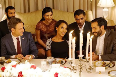 The latest episode of Scandal (#Scandal) began with the framing device of a treaty or accord or whatever they call it when two countries that have been feuding non-militarily finally come together and open their borders to each other, singing and holding hands as they skip through that yellow-flowered field of love. Holding a dinner for the leaders of the Middle Eastern Muslim country, Cyrus is shocked when they accept Liv instead of shunning her as the president's full-time hoe. As she and the President dine with the leader, his interpreter slyly sneaks a plea for asylum in between the otherwise frivolous banter.