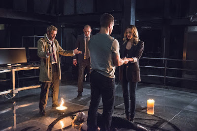 In need of an exorcism or rather a restitution of her soul, Constantine shows up to Oli's secret hideout with the team and puts her into a summoning circle. A little voodoo and trickery and he manages to take Arrow and Black Canary to the other side of Sarah's mind. Instead of in heaven or even in purgatory, she is being kept in a room resembling what I can only surmise is the Lazarus Pit. Whatever thing jumped into her body before she could during her resurrection is keeping her real soul hostage in the replica pit. Yes, that's confusing. I was very confused by it too, but Constantine was a show I enjoyed and spent nearly all of my time being confused by, so... yeah.