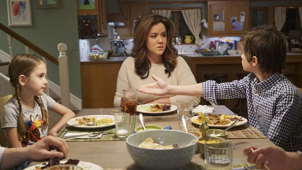 When Katie gets there, she loses it while reading a book about a mom who is overworked. She laments that she wants to return to work and how big of a deal she was at work before she had to have kids, and the class isn’t impressed. She returns home to try sleeping again, and degrades the fact that her husband works because “at least he gets a break” (again, I’m not going to get into that debate that asks what she’s doing all day at home while all of her kids are at school, because it doesn’t seem to be that she writes or runs an online business or anything, but I digress) and she never does, and this happens before she is called back to school because Oliver got suspended for the day for doing insider trading in his young mock stockbroking class (is that really a suspendable offense? Seriously, writers?). To add salt to sugar, Anna-Kat is found out as not having all the required immunization shots and sent home for the day, too. And just for the heck of it, Katie decides to pull Taylor from school for no reason and chides her for having signed up for basketball and soccer, focusing on sports more than school work. She returns home after trying to teach her children a lesson by making them pick up trash on the side of the road, only to embarrass her husband by telling his Skyped undergrad class that he isn’t wearing any pants while teaching them. The episode ends with her swearing that she doesn’t want to miss the good times after her husband takes over with the kids, therefore she won’t take that job. She tells Oliver and Taylor to limit the extracurriculars and that’s it.