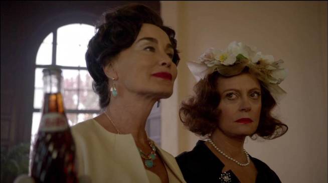 Even with those few complaints, there was not much else to complain about. You could make an argument that the season was an episode too short, or that it had far more cursing in it than an FX show normally has (we're talking the F-bomb was being dropped about as much as it would have been on HBO. Took me by surprise), or can even make mention that the current age of both Sarandon and Lange, in a comical twist, surpasses the ages of Bette and Joan during the actual filming of “Baby Jane” by about 10 years. However, there's something to be said artistically in getting senior-citizen-aged women (both are older than 66) to play middle-aged women (Bette would've been 55-56 during filming; Joan was 57-58), especially since so often in Hollywood younger women are tasked with playing middle-aged women. I could easily have seen Nicole Kidman as Joan and Julianne Moore as Bette, too, but even they are younger. In all, I liked the choices, and the series was yet another phenomenal entry into Murphy's catalog, even in spite of the fact that this still owes a great deal to the “Housewives” culture seen in reality TV that was rekindled by Marc Cherry's “Desperate Housewives” after the 80s saw the rise of “Dynasty.” Pitting two or more women against each other has become the default go-to trope in order to create strong-willed female characters. This show elevates that to a new paradigm to make a critique on both modern filmmaking and society.