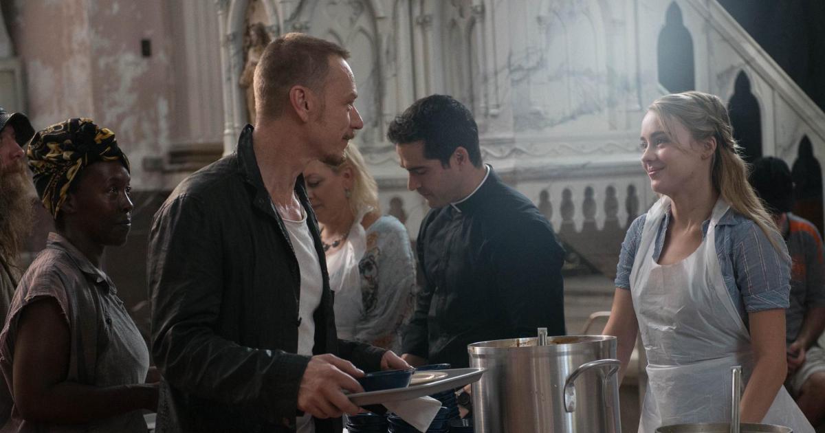 Who does Frank wake up to in his timeline but his boss, the very man who set him up to take the fall and painted him as a dirty cop posthumously, Stan Hope (played by Anthony Ruivivar). He even gets a visit from his wife and little Raimy while in the hospital, and here’s where I forgot to mention something earlier because I didn’t have room to fit it in. See, the new case that Raimy just got in her time is actually an old case, a very old and ongoing case. In a recent marsh dredging, police found a very old body, nothing but bones left. Rosary beads tied around the wrist and ankle, the ME believes it is the body of one of the victims of the Nightingale killer, an area-famous serial killer from 20 years prior that was never caught. The killer grew famous for killing nurses. One of the nurses that had gone missing long ago was just now found and that was her body. Funny enough, Raimy’s mother was also a nurse and worked with the woman that got killed by Nightingale. But when visiting Raimy’s father in the hospital, even though Raimy’s mother wasn’t on call that night, she still wore her badge to use her clout to get to see her husband without having to check in and go through protocol. While there, she is stopped by the Nightingale killer’s would-be fourth victim and takes some packets of something from the woman who was going to take an elevator downstairs to drop them in a storage room. Since Raimy and her mother are going down anyway as they exit the hospital, her mother takes them and they get on the elevator with the Nightingale himself, when before the other nurse would’ve gotten on. See where this is going?