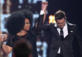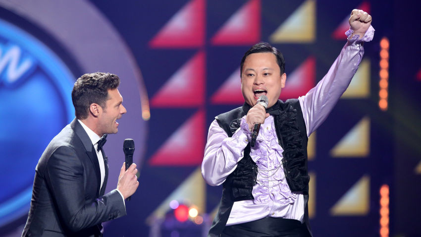 Both Diana Degarmo and her new husband Ace Young performed and boy does it look like marriage suits them well. Pia Toscano came out to remind us that yes, she can really sing, too. An embarrassment of riches, they had tons of past contestants singing and dancing and even had room to bring back another notable comic relief contestant, the famous old black guy who auditioned with his original song "Pants On The Ground." Of course they had room for last season's winner Nick Fradiani, as well as Melinda Doolittle, Kree Harrison and Carly Smithson. They literally had everyone who had ever performed on the stage, on the stage... except for Sanjaya.In probably the funniest and most awkward presence of the night (I say presence because I don't know what else to call it), Sanjaya was shown repeatedly sitting in the audience with a plain purple shirt enjoying the festivities. Probably the only idol there who didn't hop on stage in the multiple showcases throughout the night, I'm half-certain he didn't perform in the opening number with all of them in white. In fact, the producers seemed so ticked by his presence that they didn't even talk to him as he sat in a visible sight-line for the cameras. He put his hair up into a strange rubber-banded faux-hawk which I'm sure the people sitting behind him enjoyed all night. Maybe residual hatred for him being at the center of the Idol scandal that, in my opinion, ultimately brought the show down still lingered?