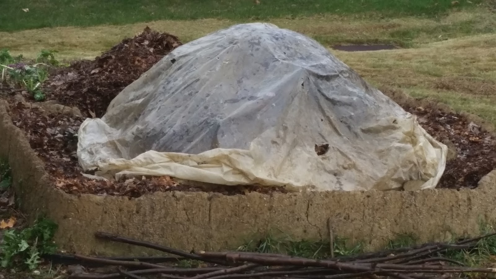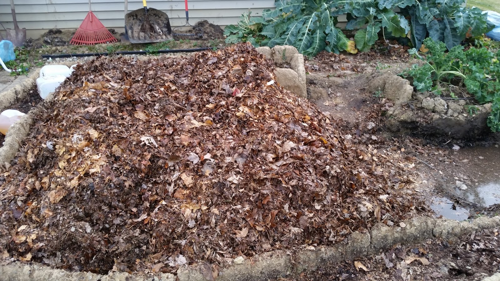 Covering it will keep it from becoming too wet during the winter, halting the composting process.Well, that's about all I have to share on my winter garden clean-up for now. I literally moved four tons of leaves and have everything set for a kick-butt spring. We'll see if everything is still alive or composted come April.