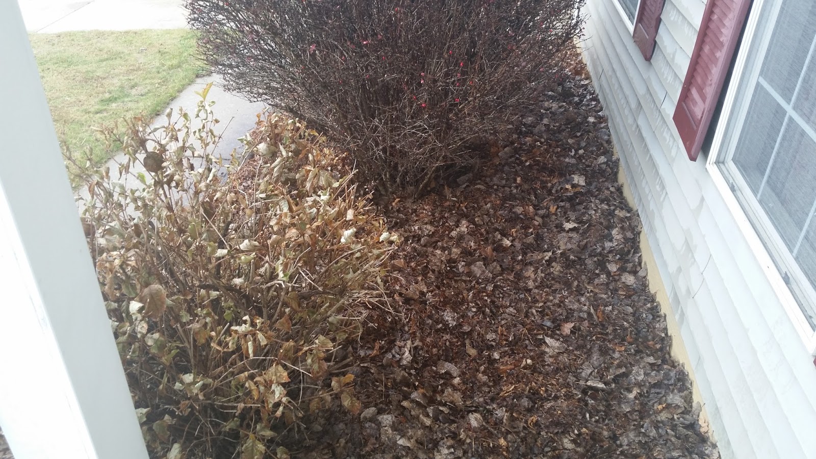 That bush in the lower left may be infected from the leaves or has lost too much nitrogen too fast. That leads to the second note which is the cautious danger I am taking with the leaf delivery. With the entire truck filled with different leaves from many different trees throughout the surrounding neighborhood, I have no idea from where over half of these leaves came. Sure, I walk the neighborhood everyday, however, some of the trees could have been diseased or dying and have yet to show signs of such distress, but contain their sickness within the leaves. So, while this is also a problem inherent but not often thought of when it concerns wood chips or regular bark mulch, it is an even bigger problem with leaves as they get everywhere and break down much faster into the soil.