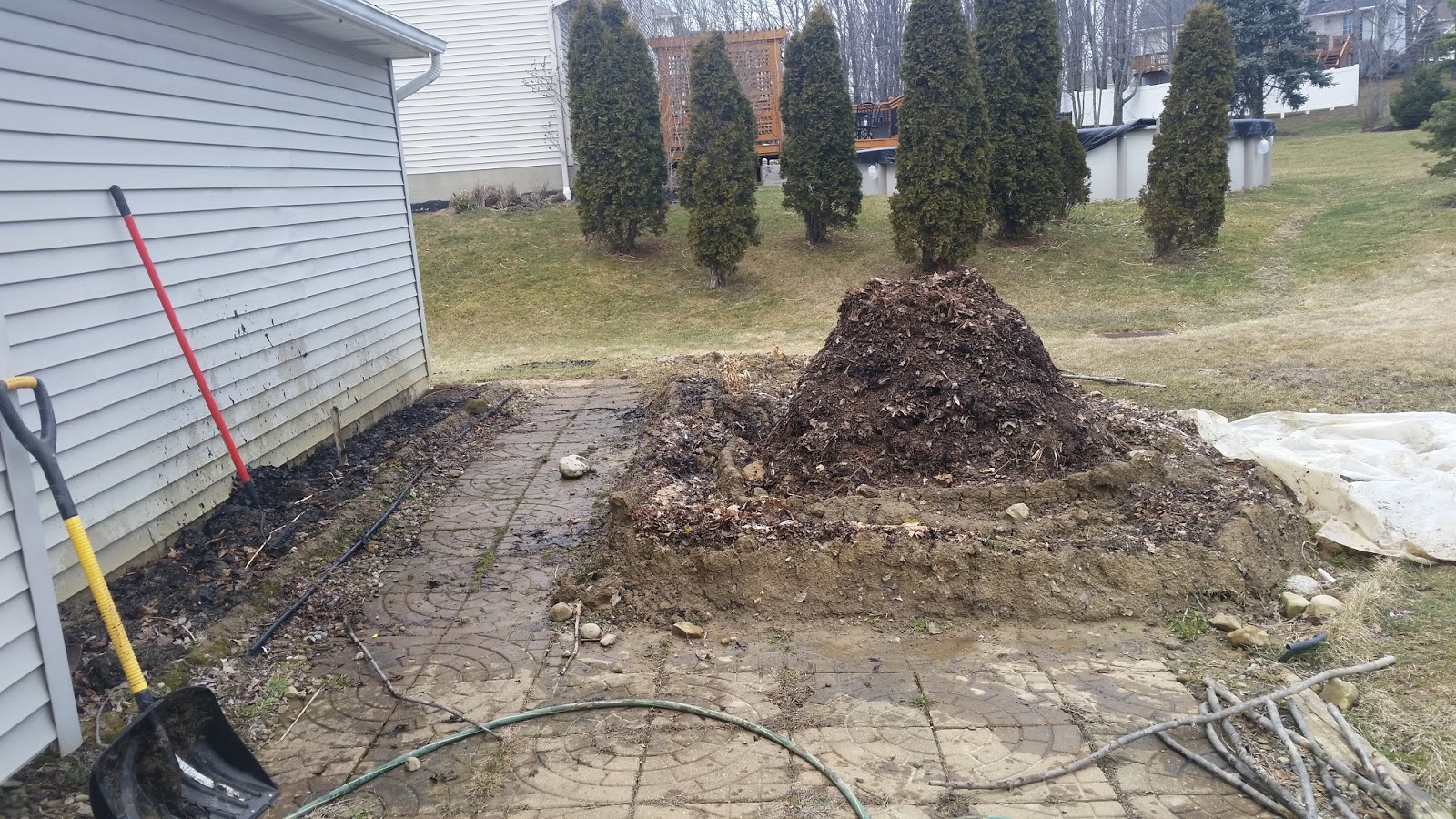 Once big and wide enough make sure that you spray it down once more to seal it with a liquid, poke air pockets in it with a sharp stick or whatever you can get to poke holes through it. The bacteria also need to breathe. Then you can cover it and do one of two things. Either wait until next spring to deal with it again and it'll slowly breakdown but it won't be completely ready the day you want to plant. Or, you can tend to it for the next three weeks, turning and churning it to put the outside stuff not yet composting into the inside over and over. This will help the pile heat quicker and leave you with less work in the spring. Come spring time you'll just need to rake it out and put it in the places it needs to go. I choose to cover mine and will look at it again in December when I get some time and a vacation. By that time it will be colder which can tell me if it's heated up or not. When you dig into the center of your pile you want it to be hot and near black as that is a sure sign the microbes are working. If it is cold enough outside, the pile may smoke. If it is smoking, congrats, you have a hot compost pile. Sit back and let it cook or turn it to keep it from burning.