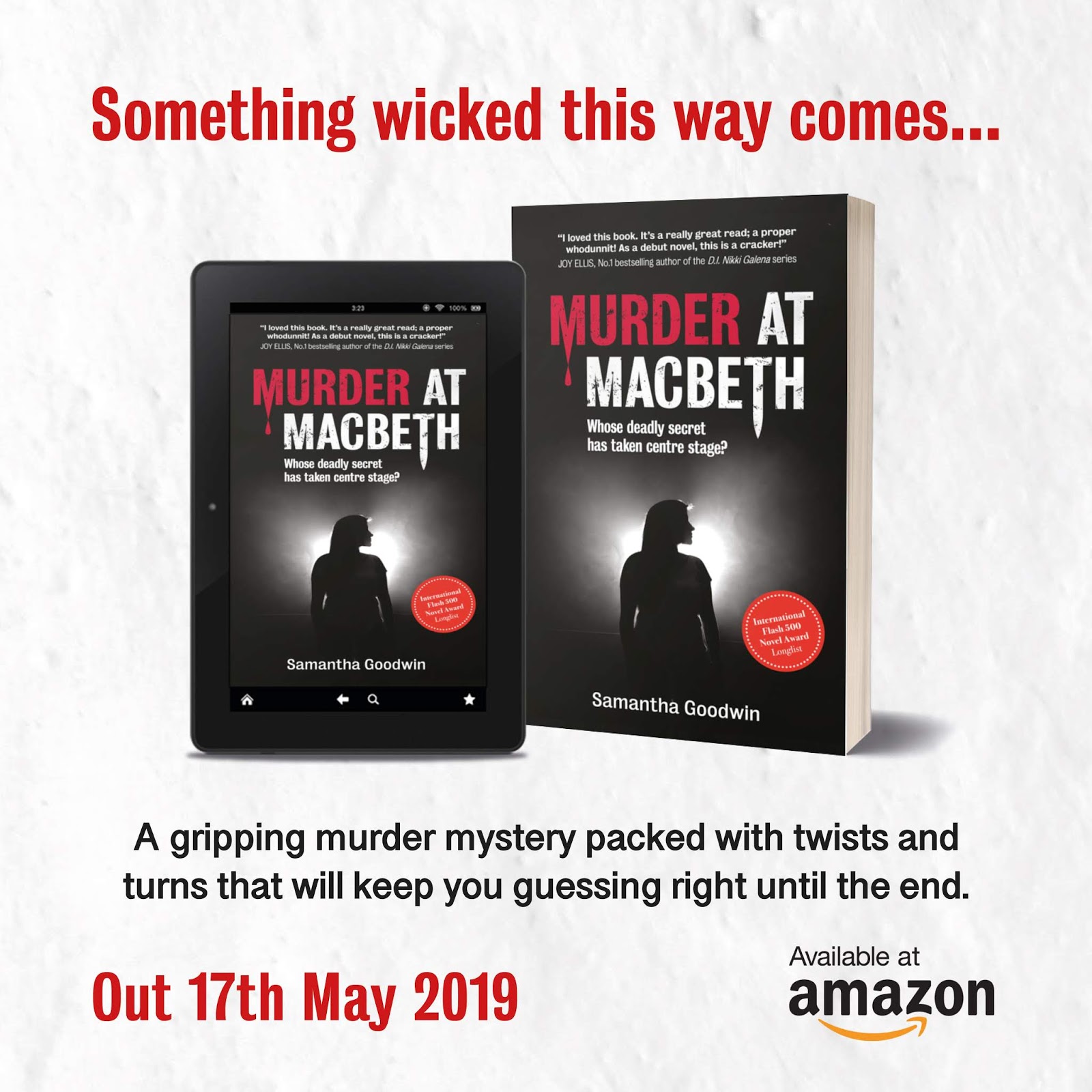 Murder at Macbeth is my first crime novel and was longlisted for the international Flash 500 Novel Award 2017.