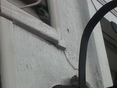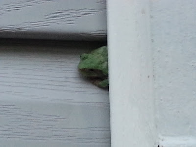 This little guy or gal comes out at night where he/she likes to perch on my porch light or wind chime and pounce on unsuspecting moths. During the day, our new friend, hides under the siding, making for cute pictures.