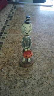 Here's the little doodad I got at the our Blueberry Festival. I'm not sure what it is, but it looks to be a mix between a creepy egg boy and a sad zombie. I needed a decoration that wasn't a pumpkin because I sadly lack variety. :-)