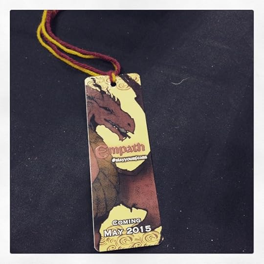 The TakeawaysYou are at the convention to sell books, but not everyone you talk to is going to buy a book. So you want to make sure that you have some kind of something for them to take away. My old standby is a business card (I also keep a stack in my wallet), but I have also seen people flip out for the Empath bookmark.