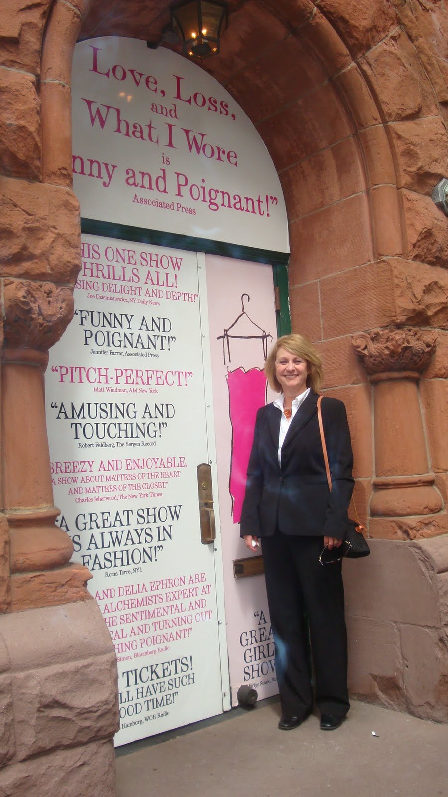 I submitted a monologue to a "have your monologue performed Off-Broadway contest" and I won. So on Mother's Day, As far as plays go, the show is a sit-down reading of several dozen monologues inspired by the book, LOVE, LOSS AND WHAT I WORE. Five actresses sat on stools and performed the material in front of them. It's low key drama, and not everyone's baileywick. The Mister yawned and checked his watch a lot. Afterward, he said, "Who would have thought five women could sit around and talk about clothes for an hour an a half?" Silly man. And let it be said that