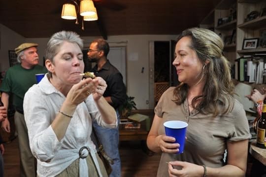 The evening before we had an author get-together thrown by Pat and Vickie Anderson. See this huge spread? They made it all. It was yum. Be jealous. I even talked Clare Dunkle into eating an “armadillo egg.”