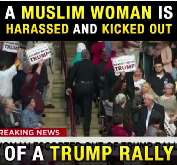 As Der Donald ranted, a Muslim woman was hooted at, jeered, and escorted from a South Carolina rally. Her crime was wearing a shirt that read "Salaam -- I come in peace." And being, you know, Muslim. The crowd got a little charged up.