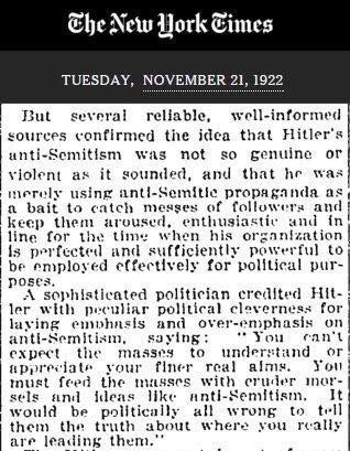 Looks like Hitler didn't MEAN anything he said in order to gain power, according to this contemporary New York Times article.