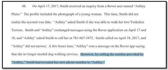 Social engineering by the suspect. Very creative. However, it required the suspect to create a social media account, email account, and obtain a phone number. Again, consider how many times he would need to connect to the Internet, from one or more devices, from one or more locations in order to do this. Each act is a potential windfall of evidence when the suspect makes a mistake. You just have to check every connection known and find the mistake. It is there. You have to look.