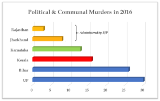 Of the 6 top contributors for political and communal murders in 2016 only two – Rajasthan and Jharkhand – are administered by BJP. So, it can’t be asserted either that BJP has unleashed an epoch of political and communal murders, despite the many serious “communal” incidents by cow vigilantes across many states in the North India. Doesn’t it imply that just by going after BJP and accusing them of all the evils actually won’t solve most of the problems?