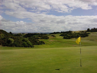 Golf and Life. Both games of stages - holes or days. The secret is in taking it one day at a time, one hole at a time, one hour at a time, one shot at a time. And you never know, you just never know, when suddenly you might pitch it into the hole from a hundred yards, or miss a simple putt from two feet, in golf as metaphorically in life. The fact that it is so obviously and utterly pointless is golf's strongest point, that and the times spent walking in such pleasant surroundings with a friend. Nobody ever has to ponder the meaning of golf, because there is no meaning, other than to have fun in good company. And in that moment of existential realisation there is revealed... the meaning of life, within its glorious lack of meaning, I do suggest.