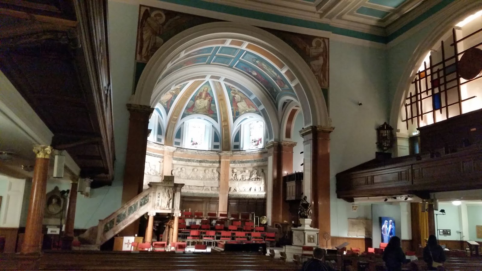Born and raised in Edinburgh, but never having bothered to look inside St Cuthbert's, I looked today, having some minutes to pass before a brotherly lunch. An old lady tried to entice me to linger, but having admired the building and its decoration I escaped to the Red Squirrel next door, which is a pub, where a waiter and a barmaid enticed me to linger with more success.