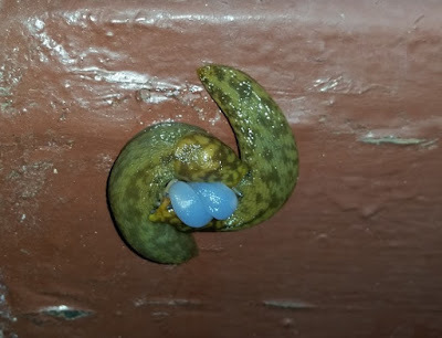 They are hermaphrodites, apparently, wrapping extravagantly coloured sexual organs around themselves and exchanging sperm from male bit to male bit, then separating and each laying eggs from female bits... if I have understood that right, which I may well not have; but did they really have to do it on my doorstep? In the act of trying to gently transfer them on a trowel to my riverbank I am afaid I may have spoiled their evening, for they parted... No happy ending? Maybe once I had gone.