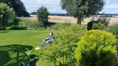 I awakened with a sense that something was not right. It was early, but I was alone. The house was silent. Where had she gone? I wandered through, calling out for her, but then through a window I could see... Ah, the sunshine had arrived. She likes her sunshine, even enough to sneak and creep away from me, to be sitting there with eyes shut like a lizard on a rock.Whereas I, being more a slothful creature of the shade, retreated in silence and went back to bed.