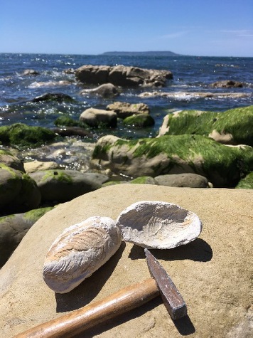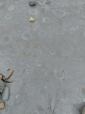 My son is currently fossil hunting near Lyme Regis. He cracked open a rock and found this fossil when a curved shell-like portion fell cleanly away. Imprinted evidence of ancient life. I don't know what it is, but it is nice.
