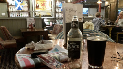 This place recently seems to be veering toward becoming a beer review blog, but I like the images of everyday life within pubs, even though beer for me is not literally an "every day" event and is only ever one pint a day - well or on Sunday was two 330 ml bottles which is admittedly slightly over one pint. Anyway, I can report from today's research that Belhaven Black Scottish Stout is a perfectly acceptable beverage, but probably not one I would go to again, unless in a crisis, given the availability of plenty somewhat superior brews. I know that you needed to know that, or at least "Sean Jeating" did, probably.