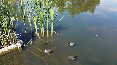 Are these coots in the first picture? Anyway whatever we call them they are what they are, which could be called anything and would make no difference. But the significant issue to me was that the mother was tirelessly catching tiny black fish and feeding them to her children even though the children were demonstrably able to catch and feed for themselves; thus in that little mother bird I saw the behaviour my own dear lady displays every time she journeys round town with our daughter who now earns about twice as much as her mother. Much animal behaviour is universal.
