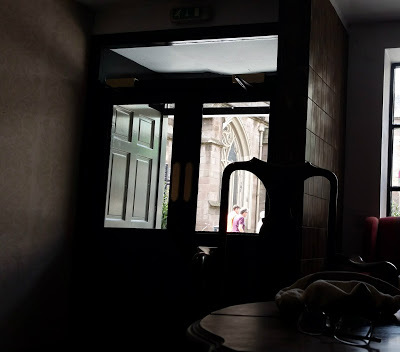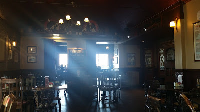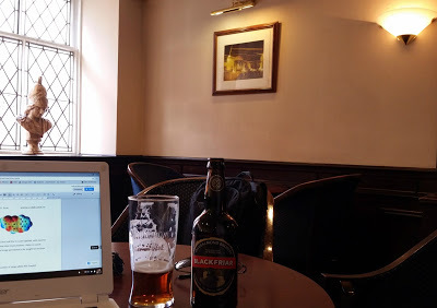 Silence, other than mild murmurings from afar, one pint of Guinness, sunshine flooding in from across the blue Forth, serene solitude, 73 minutes, 1346 words... Thus time passes on a lazy Sunday afternoon.