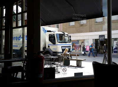 Nowadays it is an image that stimulates thoughts of madness, of what the lunacies of belief and brain fever can drive some people to, yet however alarming it could seem out of context and with no indication of relative motion, it was just an incongruously parked truck in a pedestrian precinct containing two young men eating sandwiches with their coffee while taking sneaky glances at a pretty young woman on a bench. Moments later a young man arrived, took the pretty woman by the hand and they walked away, leaving the truck drivers to their sandwiches and coffees and dreams.
