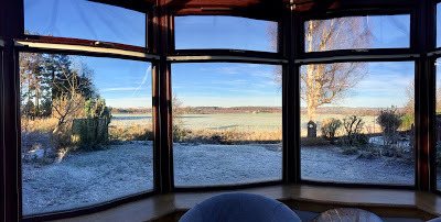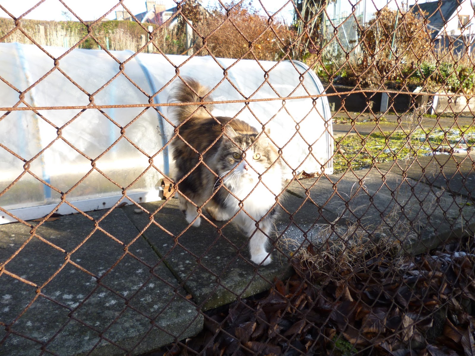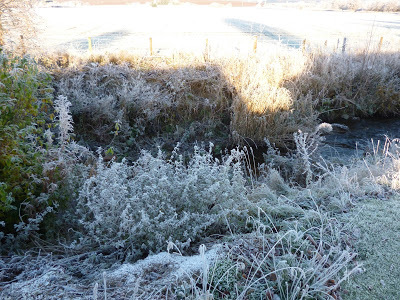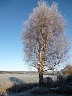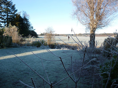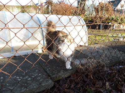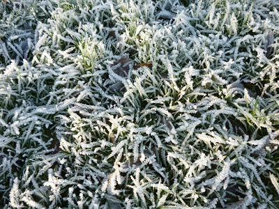 Not with snow yet, but with frost and cold hands scraping ice from the car windscreen and an almost bald head wondering where the woolly hat has been left, and with fingers feeling for gloves, and with little birds in the garden mobbing the fat-filled half coconut shell and scuttling across the frosted grass blades for the scattered seeds. And a cat is watching... It will have its share of the feed, indirectly. Thus Nature proceeds.
