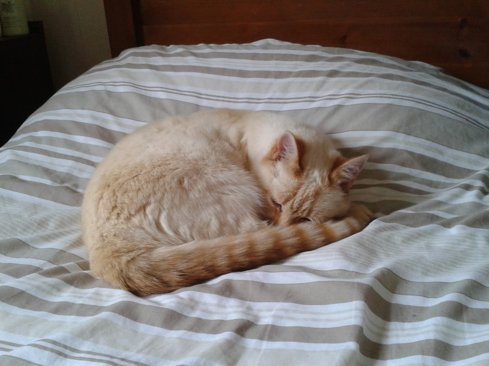 To be a cat is to embody the perplexities of life and morality. A lovable ball of fur that affectionately dunts my head with her head, and yet a ruthless killer that seems to take psychopathic pleasure in the kill; although while probably oblivious to the torture she causes, which may be due to a genetic lack of empathy, or is it just animal badness? Can animals other than us truly be bad? Be evil? And if not, can we? She has a head that lies untroubled by such thoughts, unlike mine. What is she dreaming of? Of dunting my head affectionately, or of meeting a mini me and pouncing with torturing claws? Her head contains the secrets of a cat, never to be known by me, or thee.