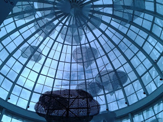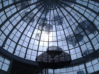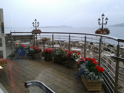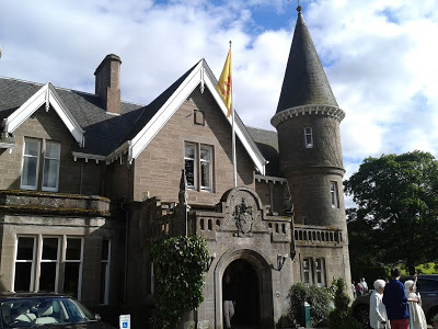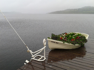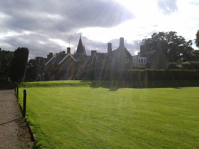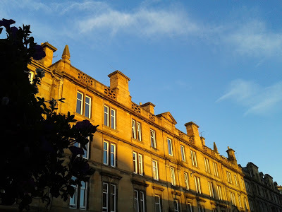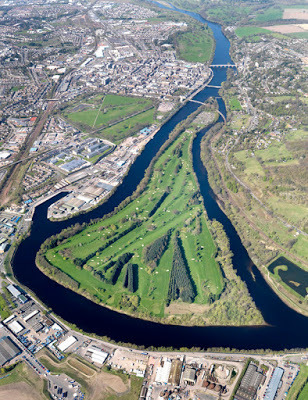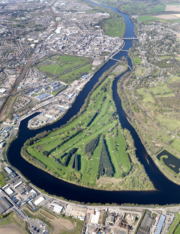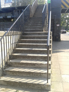 Well, the stairway to the pathway across the railway bridge across the river Tay, leading to Moncrieffe Island, where a pleasant stroll through woodland and beside the allotments leads to the King James VI golf course, laid out by Old Tom Morris in 1897, where cares can seem strangely left on the other side of the river while enjoying a pleasant few hours and then a drink in the bar in what can seem like another world of sunshine, greenery and peace, or fresh rainfall greenery and peace, or sunshine and showers and greenery and peace, otherwise known as heaven:
