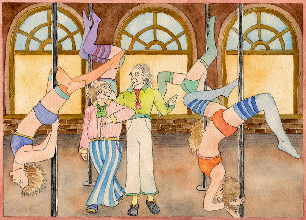 "...Edrid and Adrig, two superior beings who are scientists native to a distant civilization that is ruled by women - known as the Lady Lords. As scientists, these two could probably best be described as anthropologists, and Sample 717 could best be described as planet Earth. Adrig, the elder of the two by several hundred years, has become enamored of our world mostly because Sample 717 has many slim and beautiful women who don't generally order men to do their every bidding - unlike the Lady Lords. The Lady Lords, who are built like Mack trucks, take great pleasure in terrorizing their puny men, even to the point of forcing them to drink a concoction called testosterjuice whenever they're feeling a bit 'broody'. You get the idea. Adrig and Edrig decide to make a trip to Sample 717 in order to enjoy the sights, promising the chief Lady Lord (a brute from the sound of things) they'll return with a virile football player for her entertainment. They attire themselves in the only Earth clothing they have available - some 1970's gear that Adrig had brought back from an earlier sojourn. Their travel pod carries them to Earth where nothing goes quite as they planned..."