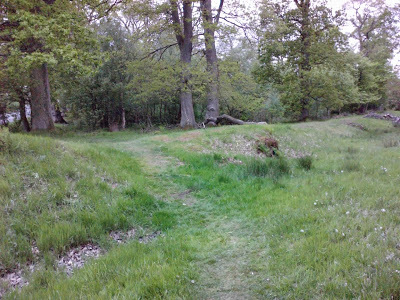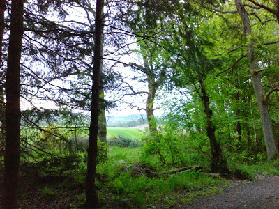Close to some poor people's last view from the wood where they burned (supposed) witches and wizards, the Roman earthworks and a view to the hill of our bronze-age fort, but all now just a place where I walk