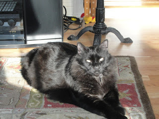 "Oh, Hai. I'm Sineady-Cat-the-Fraidy-Cat. I'm the cat you never see....unless I have some really important news to tell you. And I do. My friend, Cody, has reviewed Mom's book, I'd Rather Be a Cat: The Official Better Than Dogs Cat Book, and in her eyes, well, it's a winner. Why, she even refused the warm cream and caviar I offered her (to quell any doubts about the awesomeness of Mom's book.) She said, twan't necessary. She loved the book without the bribe. Great news.... Thanks Cody, and thank to your Mom, Caren for letting you use the computer.