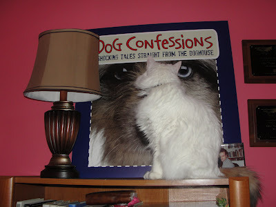 Okay, it was silly of me to leave it where she could see it. But it's a big poster and there aren't too many places I could display it.I tried to explain it was just business--that by writing DOG CONFESSIONS: SHOCKING TALES FROM THE DOGHOUSE, I by no means meant to diss my puddies. But, well, she's given me the cold shoulder for an hour now.