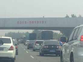The early start pays off and we’re out of Beijing after an hour and a half. However on the G1 Gausugonglu (expressway) things immediately slow down to a snail’s pace. An endless number of bumper to bumper prangs bring the flow to a virtual standstill, no doubt due to the early start and loss of concentration. There are also four and five car shunts as well as trucks and buses that have made side to side contact as they try and jump lanes.
