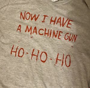 But this year I decided to press pause on the current work in progress and so it came to pass that in the first week of September I put on my ‘Now I have a machine gun. Ho. Ho. Ho.’ t-shirt and matching socks to get myself in the Christmas spirit to write a short story set in the jolliest of seasons.