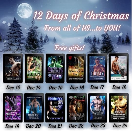 We’re almost at the end of the two weeks of free books. Here is a recap of sci fi romances that filled lots of ereaders. It’s not too late to pick up Prophesy by Lea Kirk and a few other goodies.