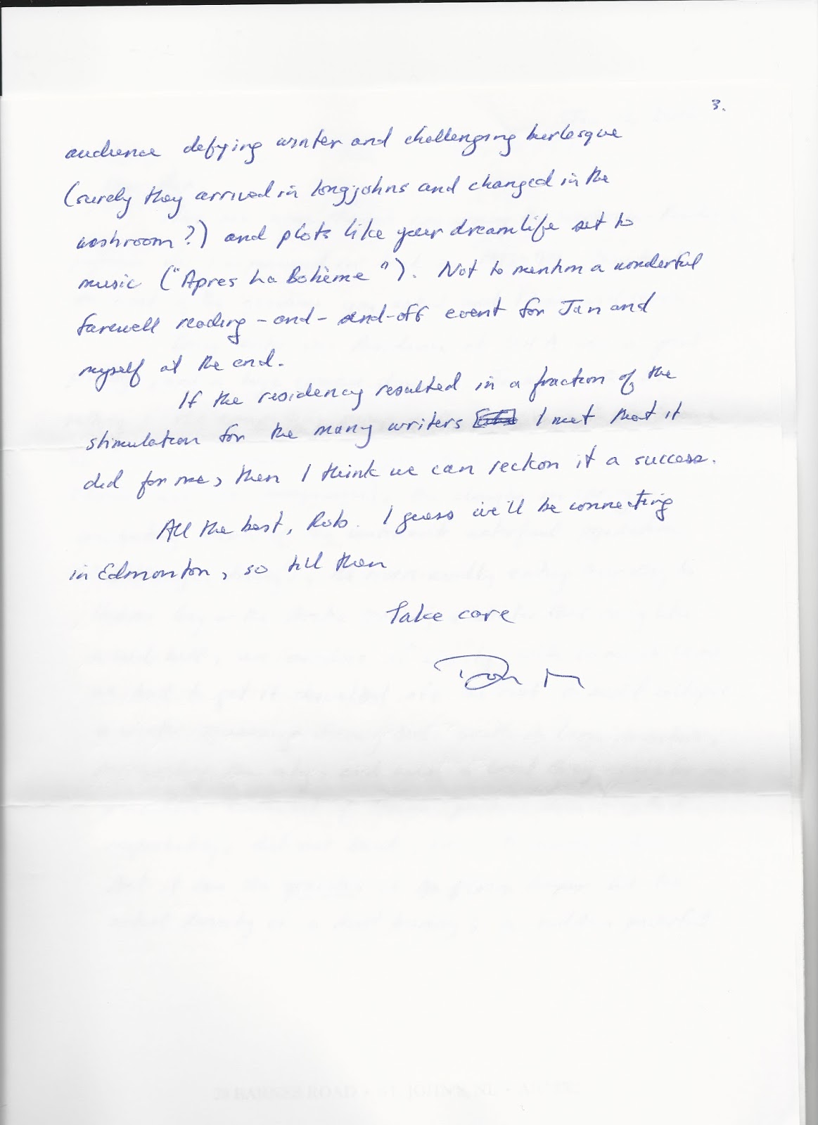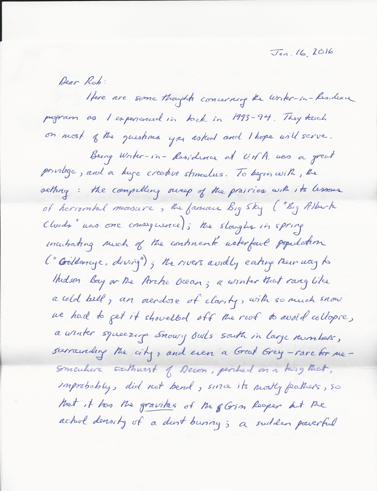 He was writer-in-residence at the University of Alberta during the 1993-94 academic year.