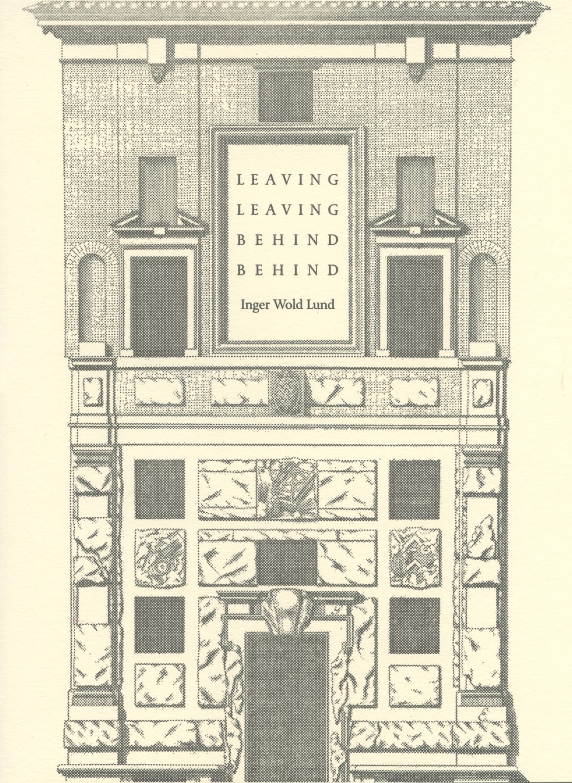 Berlin-based visual artist and writer Inger Wold Lund’s first English-language publication is the small chapbook Leaving Leaving Behind Behind (Brooklyn NY: Ugly Duckling Press, 2015), an absolutely incredible title I’m delighted to have discovered in a pile of books resting on one side of my little office. Listed in the Ugly Duckling Presse catalogue under both poetry and fiction, the delightfully subtle and deceptively straightforward prose-pieces in Leaving Leaving Behind Behind examine the remarkable within the mundane, and are easily comparable to some of the best that the border on either side of “postcard fiction” and the prose poem have to offer, whether the works of Lydia Davis, Sarah Manguso’s Hard to Admit and Harder to Escape (McSweeney’s, 2007) or Czeslaw Milosz’ Roadside Dog (1998). Certainly, the issue of genre in her work is fluid, and one that might seem as irrelevant as it is essential. In an interview posted at the Ugly Duckling Presse tumbler(a frustratingly short interview, I might add), she responds to the question “What is poetry?” with “I am not very concerned with genres, but I was told that as a rule of thumb one can recognize poetry by the ragged right margin.”