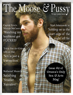 The Moose & Pussy #2. Winter 2008/2009. Editors: Jeff Blackman. Jeremy Hanson-Finger, Kate Maxfield and Rachael Simpson. Editorial by Jeff Blackman. Sex You Can Read by Amanda Earl, Anna Sajecki, Ben Ladouceur, Calum Marsh, Daniel Zomparelli, F.C. Estrella, Jason Decker, Kane X. Faucher, Kathleen Brown, Kenneth Pobo, Leah Mol, Lindsey N. Woodward, Marcus McCann, Mark Sokolowski, Nathaniel Moore, Owen Hewitt, Peggy Hogan, Richard Scarsbrook, Sonia Saikaley, Teri Doell, Tricia Van der Grient, Warren Dean Fulton and Poppy Cox. Sex You Can See by Christopher Neglia, Erin Iverson, Jenn Huzera, Ralitsa Doncheva.