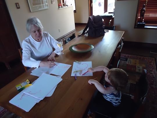 Post-nap, our afternoon took us west to the home of Sharon Harris and Stephen Cain. I can't believe it has actually been five years since I helped move them into that house. Rose laughed and laughed, and Sharon presented her with a full plate of blueberries (I'm surprised Rose left any for them).