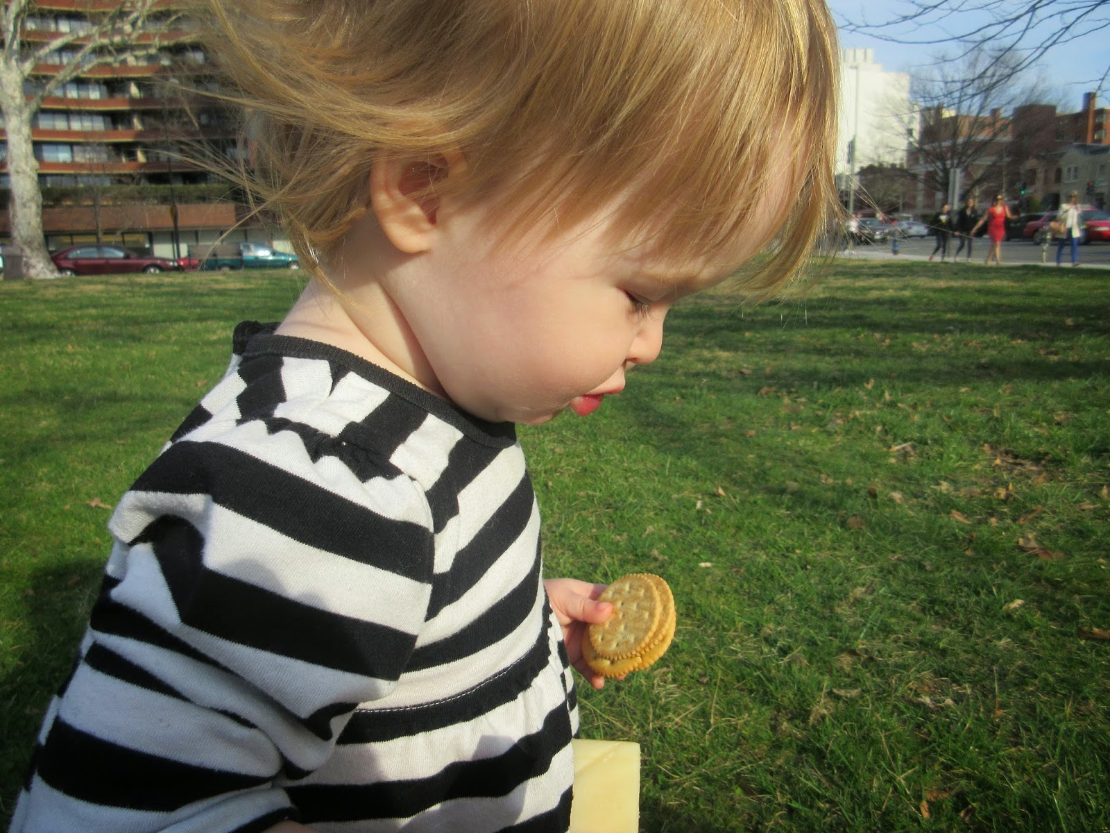 It was good to meet Mr. Smith also, but my exhaustion from carrying baby for a couple of days prevented me from remembering to capture a photo of us in the store. I've only been kicking myself daily for that, since.Slowly back towards the centre (ish), I fed Rose some dinner-ish on a small patch of grass just by the bridge. Yoghurt, cheese, crackers. Given that she’d been much of the day and the day prior in the ring sling, I figured I really needed to allow her some running space. I really didn’t want her running around in the museums, given the crowds (apparently kids are off school this week, which brings the incredible crowds to just about everything we’ve been attempting). She ate some yoghurt, and said hello to a dog.