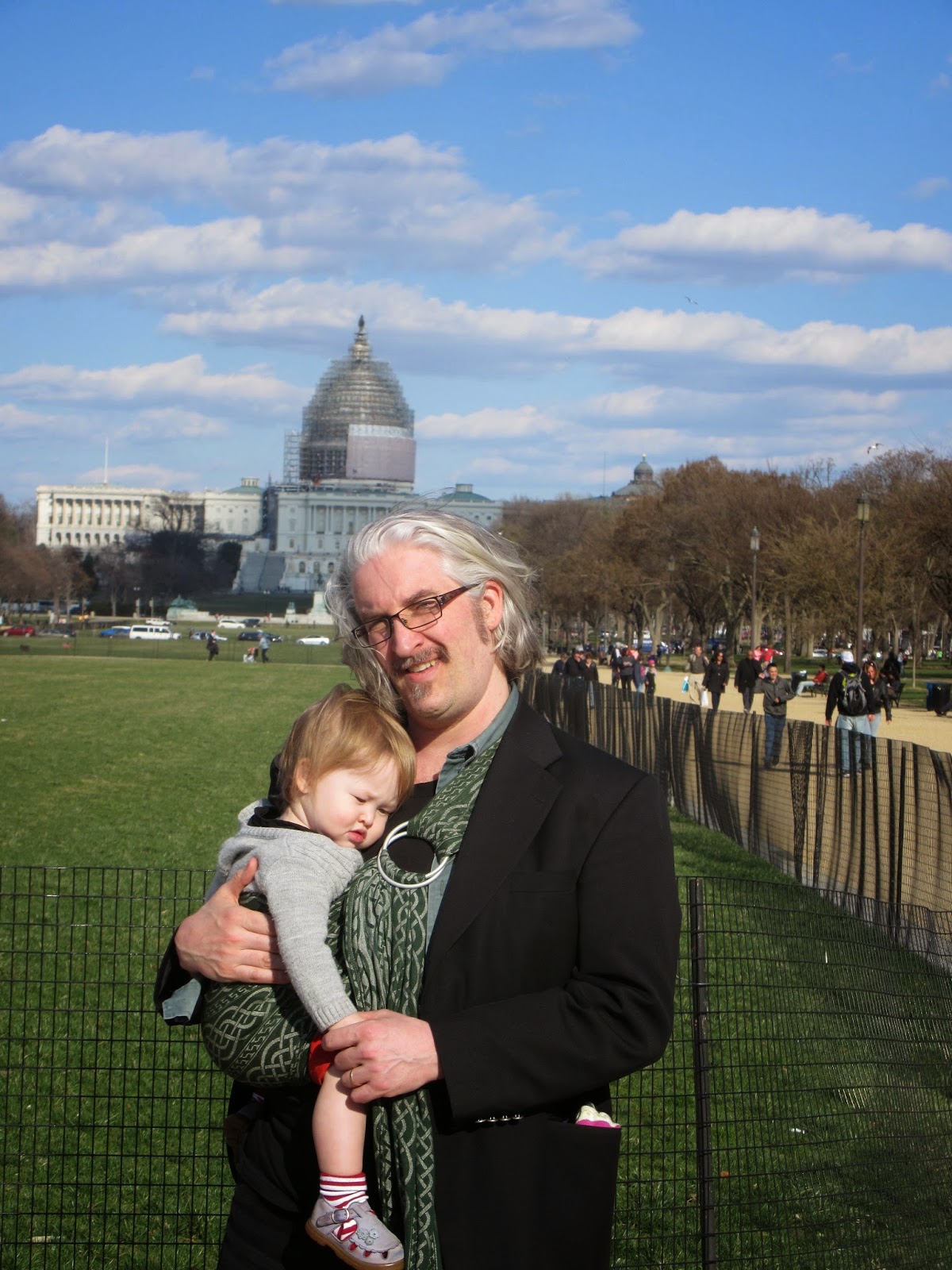 And, also, a spider sculpture by the same artist who has the spider sculpture in front of the National Gallery of Canada, back home in that Ottawa.She was asleep, again, before we landed back at the hotel. Given we had to check out by 3pm, her nearly three hour nap began in the ring sling, and ended in the ring sling. Dropped bags off at the front desk before meeting Christine at Air and Space (so she, too, could re-visit space-y things), and wandered around there a bit. A bit. A wee bit. And once done, we headed back for bags, and off to the airport [the worst part: getting to the airport and checking email to discover a good pal from high school lives in Washington D.C. and I COMPLETELY forgot; aaaaaaaaaaaaaaaarrrrrrrrrrrgh]. The wee lass (eventually) crashed on the plane. Home.