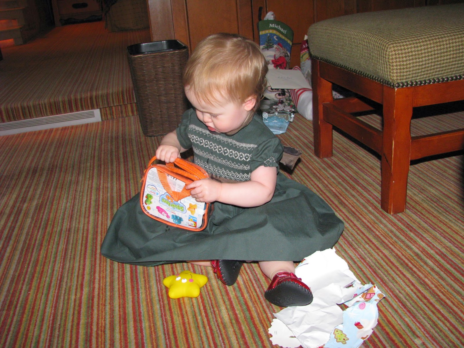 Christine attempted the swimming pool with Rose, but baby would have none of it, crying the whole time until I pulled her out to wrap up in towels (I didn't think anyone wanted to see screamy swimming photos, so haven't included them here). Once she was out of the pool, she was quite content to sit on the sidelines with me, pointing at all the other people flailing about in the eighty-plus degree water. Rose played with Teri, hugged her grandfather's leg, rifled through her aunt Alexis' presents, played with her uncle Michael, and very much enjoyed seeing her new-ish cousin Duncan (the second grandchild, after Rose, on the McNair side). At one point, she went to kiss his face, as Duncan attempted to latch onto her nose.