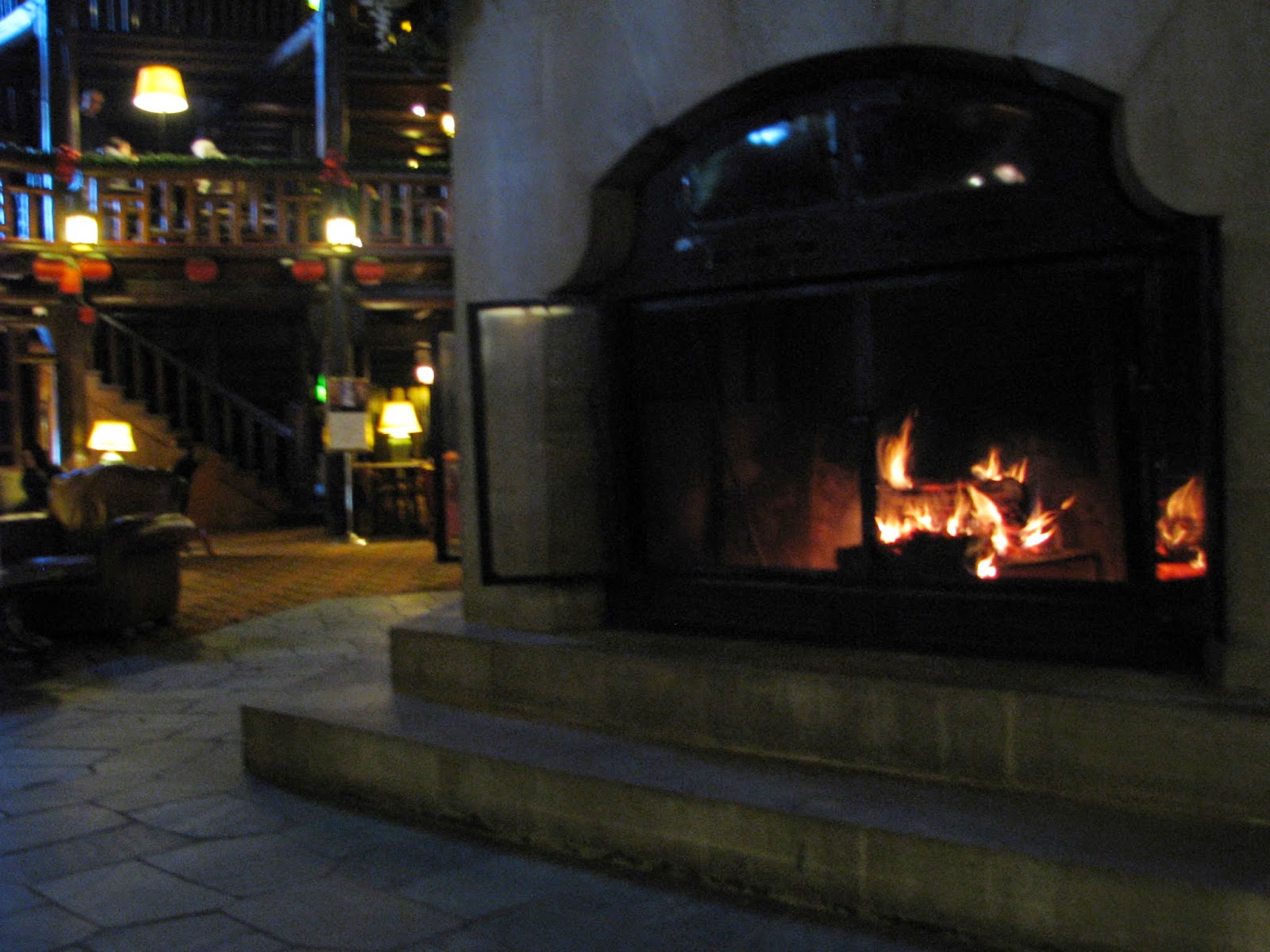 We drove out early on Saturday for the sake of outdoor winter-ings, but the warmer temperatures made the trails difficult, and we didn't think Rose would tolerate the rental sleds (we should have brought the sled she received for her birthday), so our walk outdoors was rather contained. It was even too warm for the sleigh rides! But we walked for a bit around the grounds, Rose enjoyed her time on the swings (she loves swings), and she saw a helicopter lift off from the other side of the massive hotel complex.