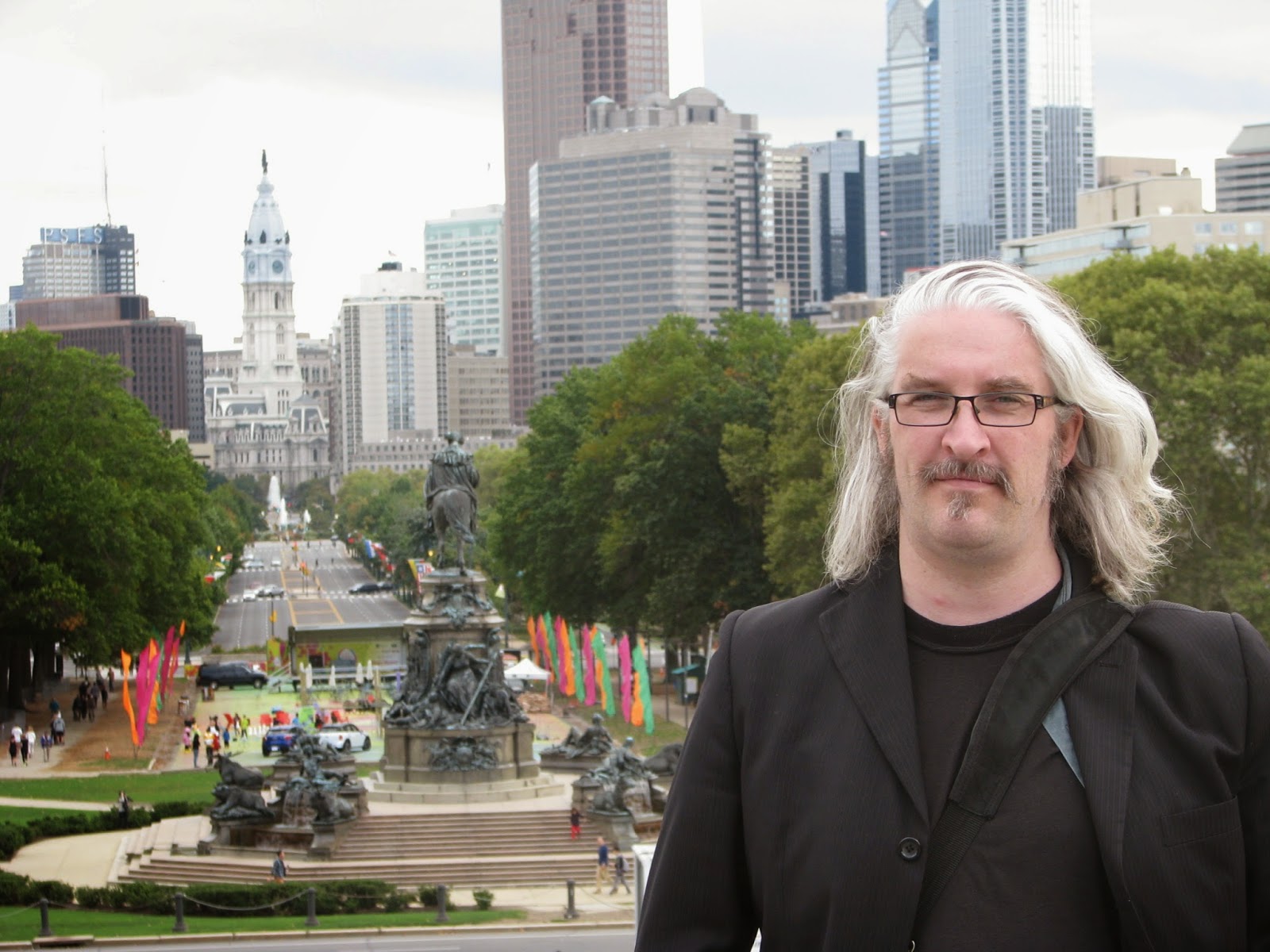 The lovely and talented Montreal writer Tess Fragoulis (who we really don’t hear enough from) tagged me in this “Blog Hop” meme [her answers to the same questions are posted here]. I agreed to participate before I realized that I had already done such, under a different title, earlier in the year. Given that I answered such on my current poetry work-in-progress (our wee babe adds much, but slows all projects down, as you might imagine), I thought it might be worth going through the process again (especially since I’d already said yes) for the sake of my current fiction work-in-progress.[Photo of myself on the steps of the Philadelphia Museum of Art, October 4, 2014, taken by Stephen Brockwell]