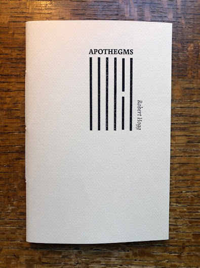 The thirty-two short poems in APOTHEGMS follow Hogg’s more recent trajectory of dating his poems, many of which are reworkings of either finished poems or drafts originally composed during the 1960s, citing both dates of composition. There does seem something quite particular to Hogg for the fact that he does this, citing not only dates, but multiple dates for individual pieces, let alone the fact that he’s returning to much earlier poems, perhaps as a way to jump-start him again into productivity. As he says in a recent interview conducted by Ken Norris, posted online at periodicities: a journal of poetry and poetics: